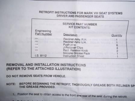 1993 Mark VII Auto-glide Seat Track kit |